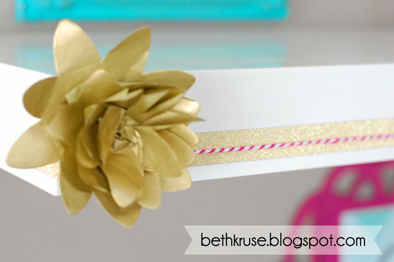 i found the gold glitter tape in the dollar bins and the little gold paper flowers on clearance.